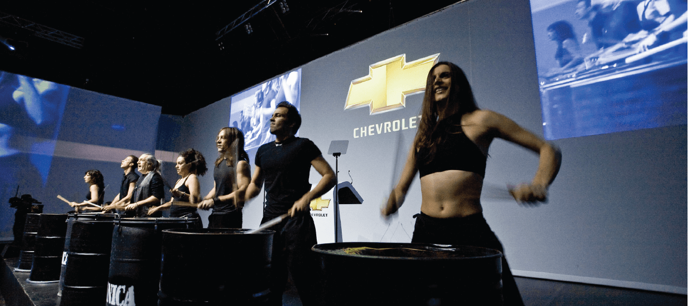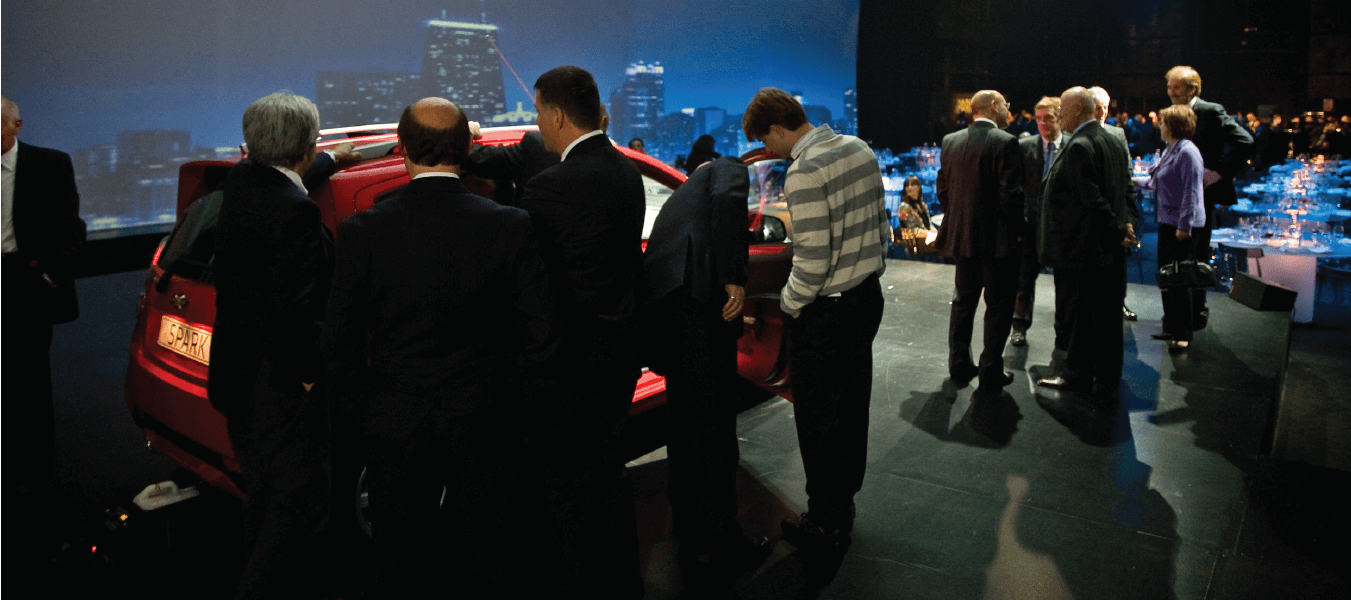 Dopo un cambio scena durato tutta la notte gli ospiti sono stati fatti accomodare in una platea che rimandava le kwords di comunicazione del prodotto in modalità dinamica e impattante, e le percussioni trascinanti dei Vulcanica hanno introdotto in maniera estremamente coinvolgente l’inatteso reveal: sull’ultimo colpo di bidone tutti gli schermi si solo alzati all’unisono scoprendo non 1, ma ben 21 macchine che “circondavano” la platea, con un effetto di forte impatto visivo ed emozionale.